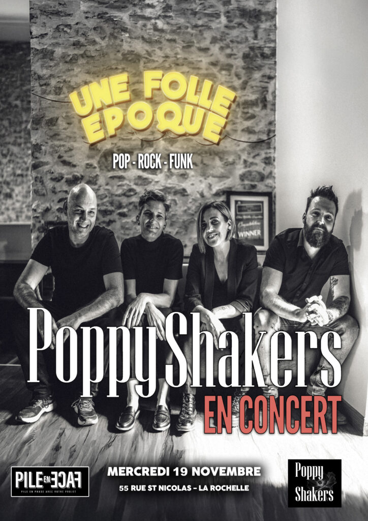 Rejoignez-nous pour une soirée conviviale et festive avec le groupe Poppy Shakers, qui vous ferons voyager à travers des sonorités Pop, Funk et Rock !